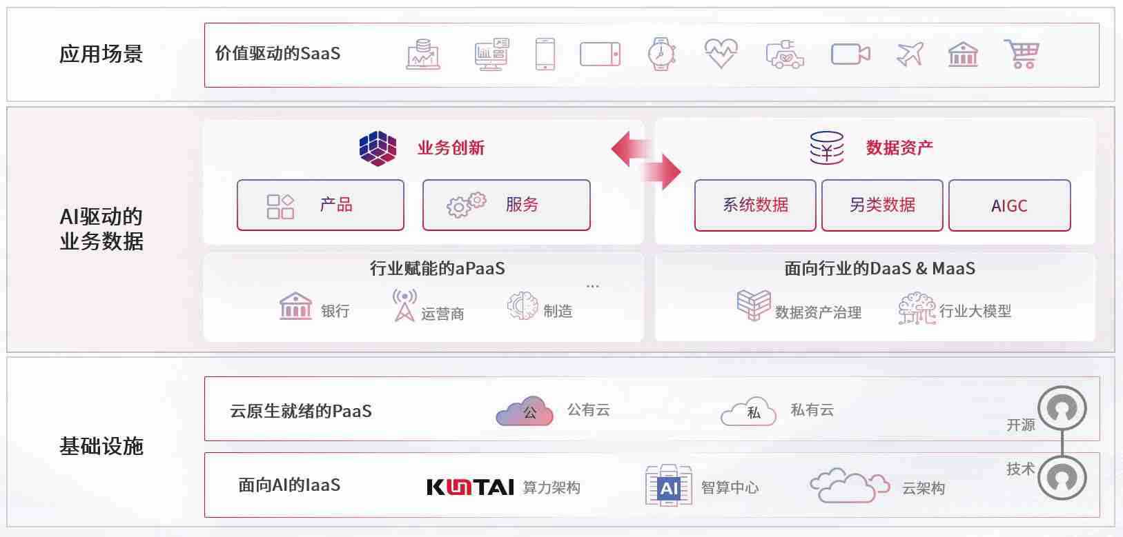 数字时代,,,,围绕企业数字化转型的关键要素,,,彩霸王数码开创性的提出数云融合战略和技术体系框架,,,,着力在云原生、、数字原生、、、、AI原生和信创产业上架构产品和服务能力,,,为处在不同数字化转型阶段的快消零售、、、汽车、、、、金融、、医疗、、、、政企、、教育、、、、运营商等行业客户提供泛在的敏捷IT能力和融合的数据驱动能力,,,,构建跨界融合创新的数字业务场景和新业务模式,,,,助力企业级客户建立面向未来的核心能力和竞争优势,,,全面推动社会的数字化、、、智能化转型升级。。。